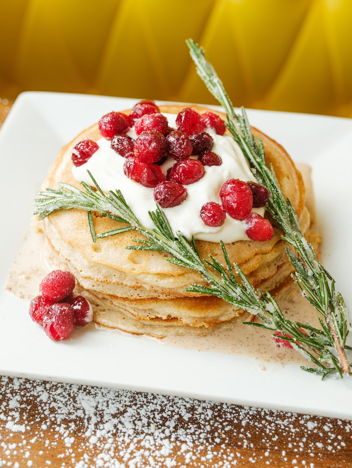 Our holiday showstopper is here. Sugar Cookie Tres Leches Pancakes. Warm milk poured tableside, mascarpone whipped cream, sparkling cranberries, candied rosemary. Christmas magic on a plate. 🎄✨